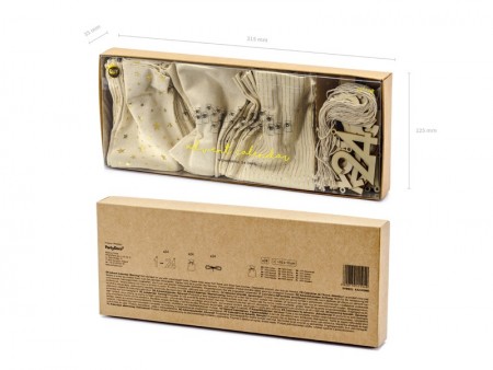 Calendrier de l'avent Sacs, l'ensemble comprend : 3 modèles de pochettes en coton (8 de chaque modèle, taille : environ 10 x 13 cm), 24 ficelles en coton (longueur : environ 30 cm) et 24 chiffres en bois. Produit à  assembler soi-même.