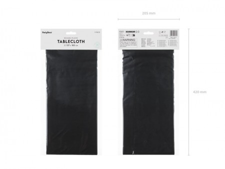 Nappe de couleur noire. Dimensions env. 137 x 183 cm. Fabriquée en matériau synthétique.