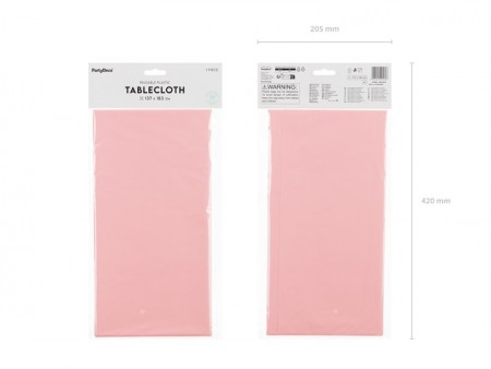 Nappe de couleur rose clair. Dimensions env. 137 x 183 cm. Fabriquée en matériau synthétique.