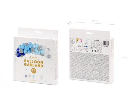 Guirlande de ballons bleue, ensemble comprenant 60 ballons (10 Argent brillant, 10 Pastel de couleur bleue, 10 bleu clair pastel, 17 Pastel de couleur bleue et 13 Pastel de couleur blanche) et environ 2,5 m de ruban de guirlande de ballons. Instructions comprises.