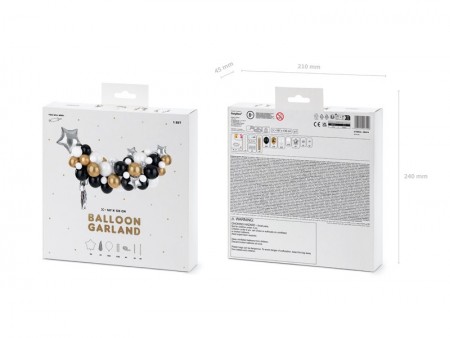 Guirlande de ballons Etoiles, mélange de couleurs. Le lot contient : ballons en latex (52 pcs.), ballon ? modeler (1 pcs.), ballons en aluminium (6 pcs.), guirlande (1 pcs.), ruban adhésif en mousse (30 pcs.), paille en papier (1 pcs.), 0.5m de ruban pour guirlande. Dimensions en 167x135 cm environ. Instructions comprises.