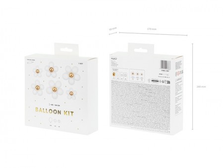 Kit de ballons Fleurs, le set contient 6 ballons de couleur or, 30 ballons de couleur blanche, 4 cercles de taille 13 cm et 2 cercles de taille 11 cm pour attacher des ballons. Taille des fleurs apr?s assemblage env. 40 cm, 45 cm, 50 cm.