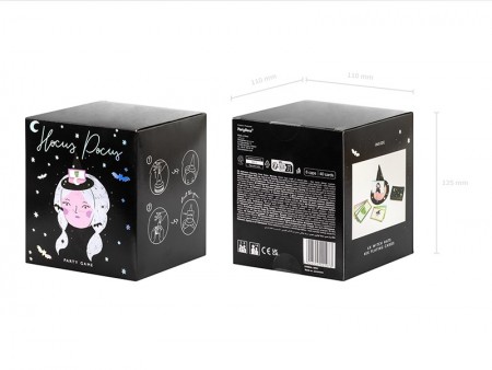 Jeu de cartes \Devine ce que c'est ?\ comprend 6 bonnets de sorcière avec élastique et 40 cartes illustrées. Nombre de joueurs : 2 a 6.