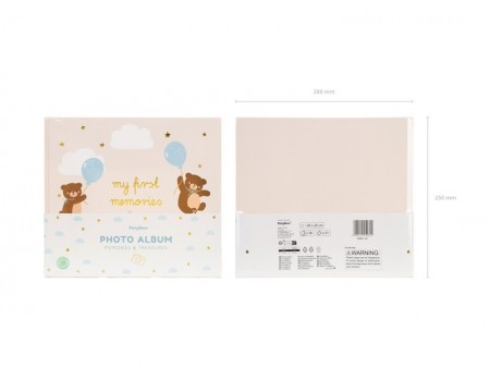 Album photo Teddy Bear, relié avec du papier imprimé beige, lien en ruban, env. 28 x 25 cm, 50 pages, incluant les autocollants