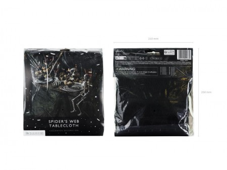 Nappe toile d'araignée noire, dimensions environ 135 x 180 cm. Composition : polyester - 100 %. Instructions d'entretien : laver à  40°C.