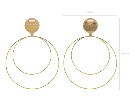 Décorations en métal à  suspendre Circles de couleur métallique dorée, l'ensemble comprend 2 cercles, diamètre d'environ 20 cm et d'environ 28 cm.
