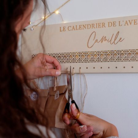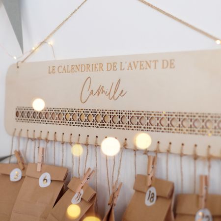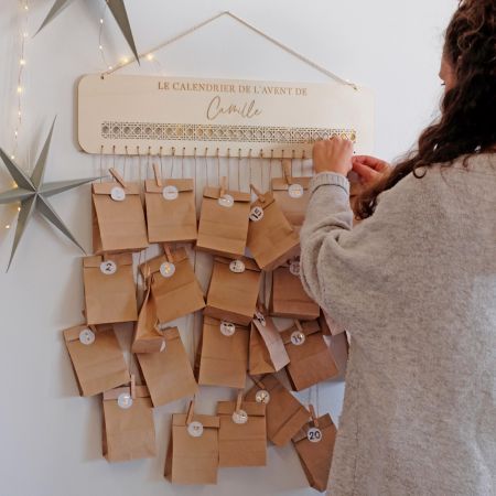 Il est gravé avec la phrase "Le calendrier de l'avent de" et personnalisable avec un prénom.