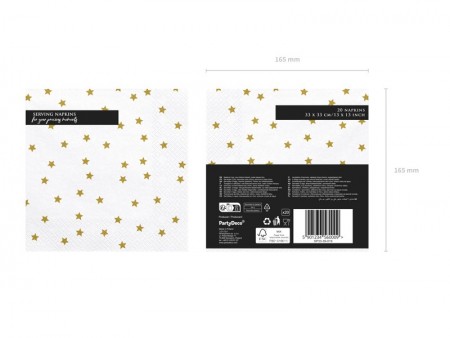 Serviettes de table en papier Etoiles en blanc avec impression dorée, dépliées environ 33 x 33 cm, pliées environ 16,5 x 16,5 cm.