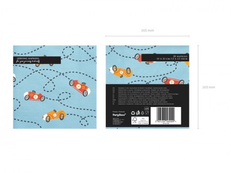 Serviettes en papier Cars, mélange de couleurs, dimensions dépliées environ 33 x 33 cm, dimensions pliées environ 16.5 x 16.5 cm.