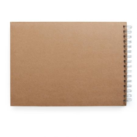 Il est composé d'une couverture rectangulaire (21,50 cm x 30 cm) rigide en kraft, de 30 feuilles blanches épaisses en papier glacé et d'une reliure en anneaux métalliques.